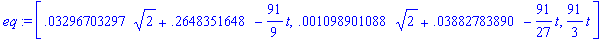 > plane(p1,(M[1,1]-(y*R[3,1]-z*R[2,1]))/R[1,1]-(M[2,1]-(z*R[1,1]-x*R[3,1]))/R[2,1]=0,[x,y,z]):plane(p2,(M[2,1]-(z*R[1,1]-x*R[3,1]))/R[2,1]-(M[3,1]-(x*R[2,1]-y*R[1,1]))/R[3,1]=0,[x,y,z]): line(l1,[p1,p2]):eq:=Equation(l1,'t');# Параметрическое уравнение прямой