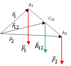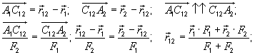 Аналогично для поверхности и линии.Пусть тело с мерой τ разделено на части с мерами τ1, τ2, τ3, центры тяжести которых известны и находятся в точках С 1, С 2,С 3. В этом случае имеем
