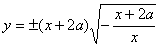 | 1975. | ; кривая расположена в той области, где x и x + 2a имеют разные знаки, т.е. при - 2a ≤ x < 0. Особая точка (- 2a; 0) – точка возврата; x = 0 – асимптота. Кривая – циссоида, такая же, как на рисунке Нажми на линк для просмотра рисунка, но смещенная на 2а влево. |