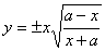 | 1982. | Две области расположения: 1) x > 0; 2) x < - a. Асимптоты: и х = 0. Точка возврата (- а; 0). Экстремумы y при . |