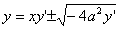 (y - xy′)² = -4a²y′, – уравнение Клеро. Любая прямая семейства , а также кривая, определяемая особым интегралом xy = a², дает решение задачи. |