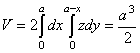 | 2333. | Сечения плоскостью z = h – параллельные прямые, т. е. поверхность цилиндрическая Нажми на линк для просмотра рисунка. Искомый объем ![]() |