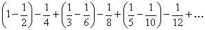 | 2448. | После первой перестановки членов напишем ряд в виде . Выполнив действия в скобках ,получим ряд, члены которого вдвое меньше членов данного ряда. После второй перестановки членов преобразуем n - ю тройку члено , при n = 1,2,3,