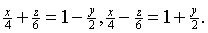 | 585. | 3 x + 4 y = 24, 3 x - 4 y = 12 z, z = 0, 3 x = 4 y |