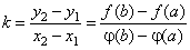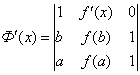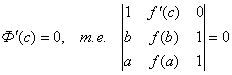 | 1111. | . Так как Ф(b) = Ф(а) = 0 и в интервале (a, b) имеется производная Ф(x) ′, то по теореме Ролля между a и b найдется х = с, при котором , отсюда f(b) - f(a) = (b - a)·f ′(c). Функция Ф(х) есть удвоенная площадь ΔАМВ, где М - любая точка на дуге AВ. |