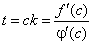 | 1113. | Угловой коэффициент касательной , а в точке . Угловой коэффициент секущей ; по теореме Коши между a и b найдется t = c, при котором k1 = k, т.е. касательная параллельна хорде. При этом, так как φ ′ (t) ≠ 0, то φ(а) < φ (с) < φ (b) (или наоборот), и точка касания находится внутри дуги. |