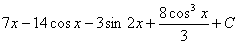 | 1384. | 3x + 4·sin x + sin 2x + C. |