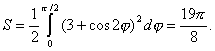 | 1645. | rmax = 4 при 2φ = 90° + 360°·n, т. е. при φ = 45° + 180°·n = 45°, 225°; rmin = 2 при 2φ = - 90° + 360°·n, т. е. при φ = - 45° + 180°·n = 135°, 315°. Смежные экстремальные радиус-векторы при 45° и 135°. Искомая площадь равна  |