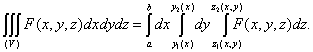 Если области (V) определена неравенствами a ≤ х ≤ b, y1(x) ≤ y ≤ y2(x), z1(x, y) ≤ z ≤ z2(x, y), то