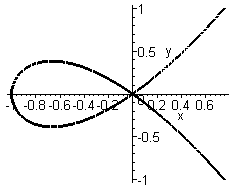 2399. Определить криволинейным интегралом площадь петли кривой x3 + x2 - y2 = 0 (см. рис.)