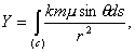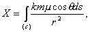 Указание. Пусть m - линейная плоскость, ds – элемент длины полуокружности, q - угол радиуса - вектора с осью Ox, а Х и Y – проекции силы притяжения. Тогда | ![]() |