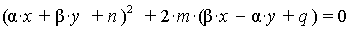 (α·x + β·y) ² + 2·m·(α·x + β·y) + F = 0, откуда