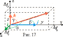 17). Проекции её радиус- вектора OM = r на оси координат OM1 = x, OM2 = y и OM3 = z называются прямоугольными координатами точки M или вектора OM = r.2°.Радиус- вектор точки в пространстве. Модуль или длина радиус- вектора OM = r :