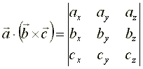 (a × b)·c = - (a × c)·b = - (c × b)·a. (2) - Если два из трёх данных векторов равны или параллельны, то их смешанное произведение равно 0.