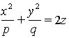 | 2) | x2 + y2 = 2 a z | 7) | x2= 2 y z |