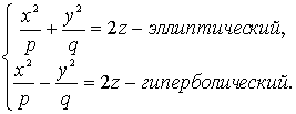 - Параболоиды (при pq > 0):