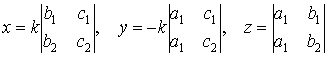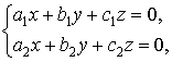 2°. Система двух однородных линейных уравнений с тремя неизвестными