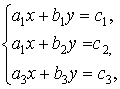 4°.Система трёх линейных уравнений с двумя неизвестными