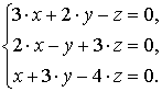 3°.Система трех однородных линейных уравнений с тремя неизвестными