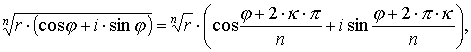 | [r·( cos φ + i sin φ)]n = rn (cos n φ + i sin n φ) | (5) |