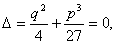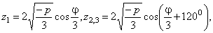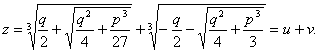 Уравнение z3 + p z + q = 0 решается по формуле Кардано: