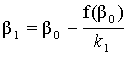 4° Способ касательных (способ Ньютона). Пусть β 0 тот из концов отрезка [a, b], на котором f (β 0)·f ″ (β 0) > 0. Тогда приближением к корню х будет точка β 1 пересечения с Ох касательной к кривой y = f (x) в точке [β 0, f (β 0)] (рис. 23):