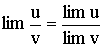 , если lim u и lim v существуют и lim v ≠ 0.