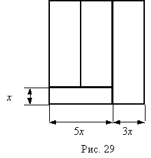 1240. Общая длина стен изображенного на плане дома (рис. 29) должна быть равна 90 м. При какой ширине х коридора площадь трех остальных комнат будет наибольшей?1241. В прямоугольный треугольник с гипотенузой 8 см и углом 60° вписан прямоугольник, основание которого расположено на гипотенузе. Каковы должны быть размеры прямоугольника, чтобы его площадь была наибольшей?
