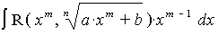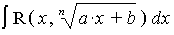 , где R(x, y) - рациональная функция, находится подстановкой a·x + b = tn, в интеграл более общего вида