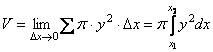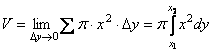 2°. Объем тела, образованного вращением вокруг оси Оy криволинейной трапеции, прилежащей к оси Оy, определяется формулой