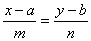 Через t секунд координаты точки М будут х = а + m·t, у = b + n·t. Исключив t, получим уравнение траектории: . |
