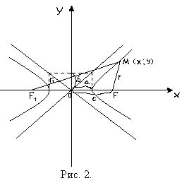 называются асимптотами гиперболы. Расстояния от точки М(х; у) гиперболы до её фокусов (фокальные радиус-векторы) определяются формулами