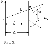 202. Даны прямые x = ± b и х = ± а (b < a) Произвольный луч ОА (рис. 3) пересекает прямую x = b (или x = - b) в точке В и прямую x = a (или x = - a) в точке А. Радиусом ОА описана дуга, пересекающая Ох в точке С. Из точек В и С проведены прямые, параллельные соответственно Ох и Оу, до пересечения в точке М. Определить геометрическое место точек М.203. Написать каноническое уравнение гиперболы, зная, что расстояние от одной из его вершин до фокусов равны 9 и 1.