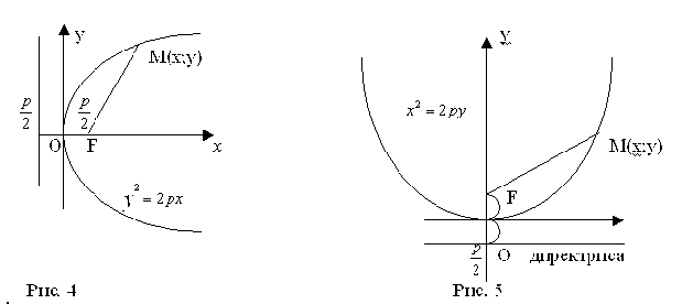 - у2 = 2рх парабола симметрично относительно оси Ох (рис.4);