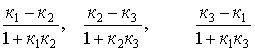 Указание. Чтобы найти внутренние углы треугольника, нужно угловые коэффициенты сторон выписать в порядке убывания: k1 > k2 > k3, затем вычислить тангенсы углов по формулам: