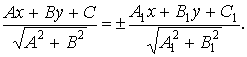 | α· ( A x + B y + C ) + β· (A1 x + B1 y + C1) = 0 | (4) |