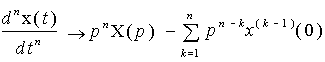 x'''(t) → p3X (p) - p2 x(0) - p x'(0) - x''(0) = p3X (p) - 3 p,