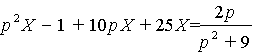 с начальными условиями: при t = 0 х(0)=1, x'(0) = 0.Пусть х (t) → X (p). Преобразуя заданное уравнение по Лапласу и принимая во внимание приведенные выше соответствия, получаем уравнение относительно изображения
