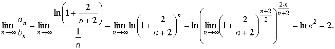 ВЫБОР ВАРИАНТА К СОДЕРЖАНИЮ РАЗДЕЛА РЯДЫ Пользуясь различными признаками, установить сходимость или расходимость ряда . Решение. Преобразуем общий член ряда к виду . Воспользуемся вторым признаком сравнения, сравнив ряд с общим членом аn с гармоническим рядом . Вычислим предел В соответствии со вторым признаком сравнения ряды и ведут себя одинаково в вопросах сходимости. Но второй ряд расходится, значит, и первый ряд расходится.