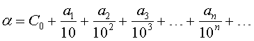 К примеру, действительное число α, представленное бесконечной десятияной дробью С0,a1a2a3…an… представляет не что иное, как сумму ряда