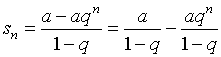 Ряд образован геометрической прогрессией { a qn }. Сумма n первых членов ряда (3) равна