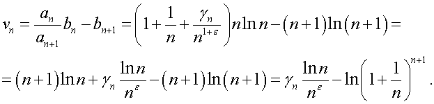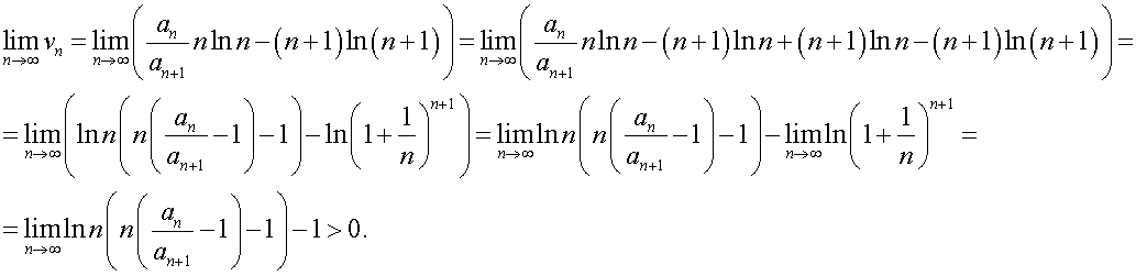 Доказательство. Пусть vn > l > 0. Тогда l an+1 < anbn - an+1bn+1. Полагая последовательно n = 1, 2, …, получаем неравенства