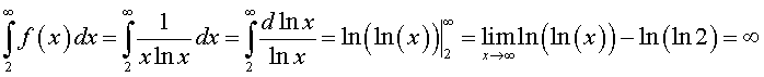 Если несобственный интеграл расходится, то в силу неравенства (7), вытекает расходимость ряда.