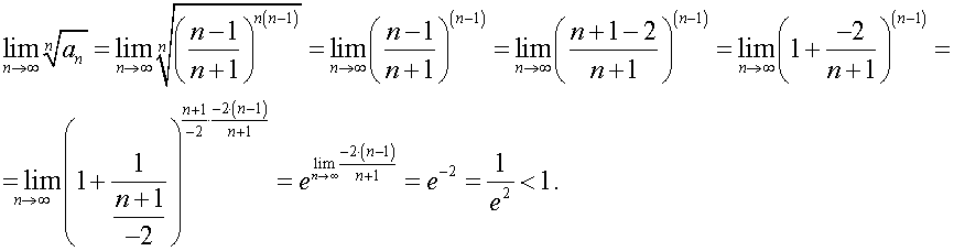 , то при R > 1 ряд (2) сходится, а при R < 1 расходится; при R = 1 признак ответа о сходимости ряда не даёт.