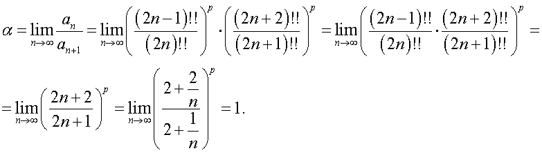 , то по признаку Даламбера ряд (1) сходится при α > 1 и расходится при α < 1.