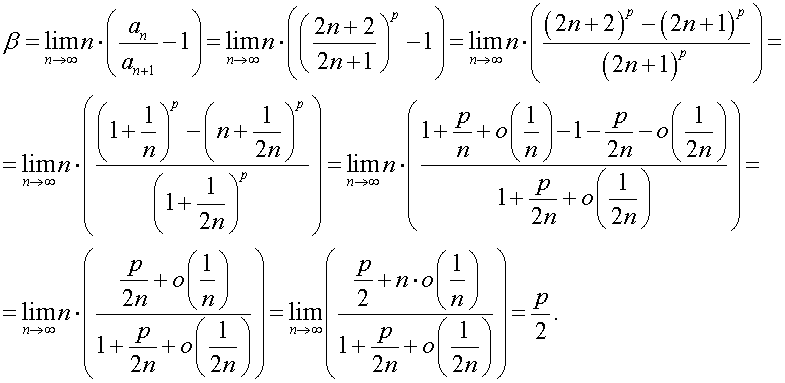 при n → ∞. По признаку Раабе ряд (1) сходится при β > 1 и расходится при β < 1.