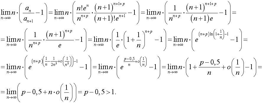 Решение. Для решения задачи воспользуемя признаком Раабе:
