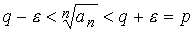 Возводя обе части правого неравенства в степень n, получим an < pn.