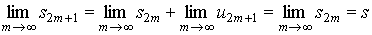 причём 0 < s < u1. Для частичных сумм нечётного порядка имеем s2m+1 = s2m + u2m+1. Так как