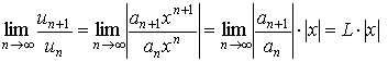 По признаку Даламбера ряд сходится, если L·| x | < 1, или | x | < 1/L и расходится, если L·| x | > 1